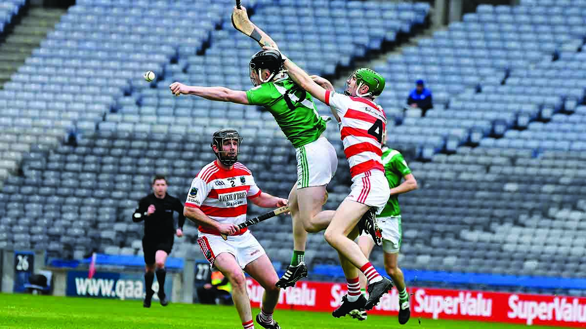 Sean O’Sullivan then picked up the breaking ball and split the posts from distance, to leave just the minimum between the finalists. Ballygiblin kept pumping long balls into the Mooncoin defence, but they along with keeper Eoin Purcell were sweeping up well at the back. The game had gotten a little scrappy, especially in the middle third, where the Rebel County side were on top.
