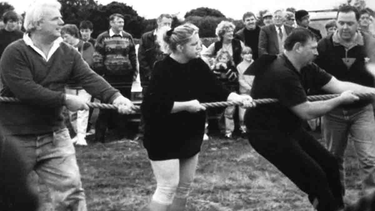 “There’s your man”, he indicated, pointing to a lone figure holding a microphone and rattling off at breakneck speed a commentary on a “close-run” pillow fight. The blow- by-blow account reaching the seasoned RTE broadcaster’s ears sounded more, he thought, like a report on a tense and nerve-racking showdown at the Olympics, so seriously did this ginger-haired commentator take the action he surveyed through binoculars from a makeshift wooden platform in the field.