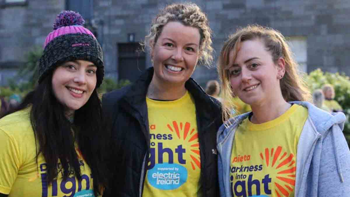Because of the walks that took place here in Kilkenny city and in Inistioge, the Darkness into Light walk raised almost €80,000. Due to the kindness of supporters, Pieta house were able to provide 48,000 hours of intervention and bereavement counselling and to answer over 90,000 calls and texts to our 24/7 Helplines in 2021. They also supported over 600 people and families devastated by the loss of a loved one to suicide.