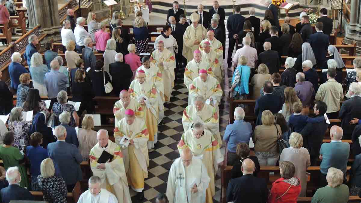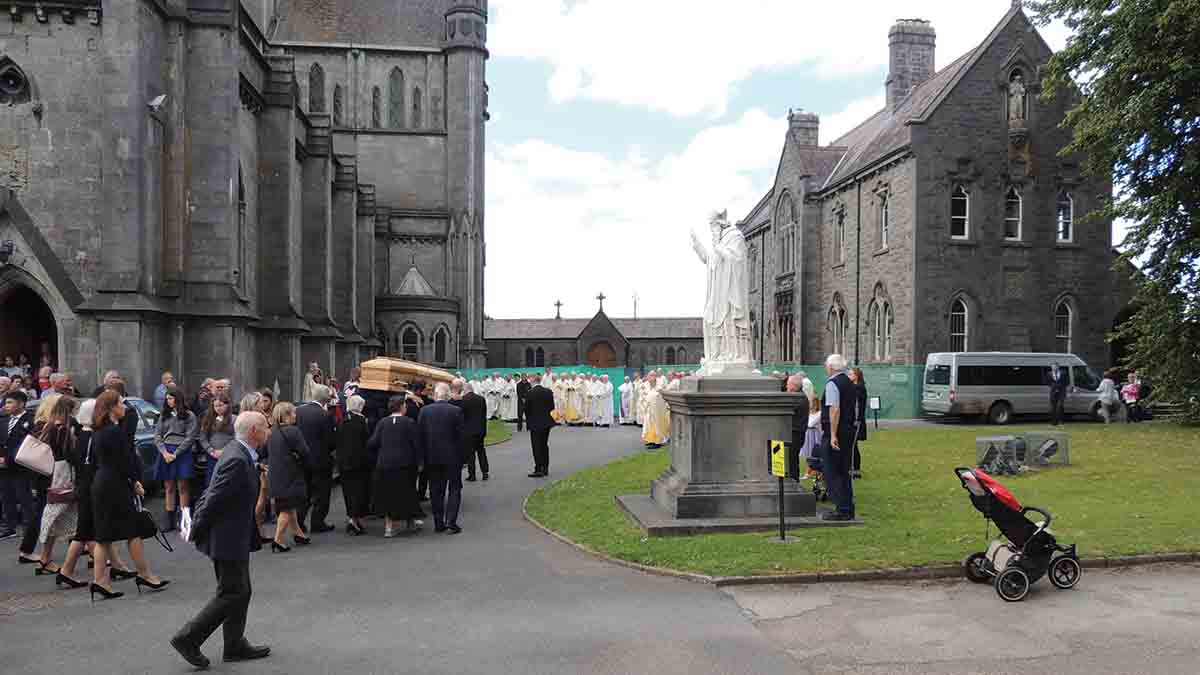 On Friday at midday Bishop Nulty was the chief celebrant of the Requiem mass. He was joined by Archbishop Dermot Farrell (Archbishop of Dublin and Primate of Ireland), Archbishop Diarmuid Martin (Archbishop Emeritus of Dublin), Archbishop Kieran O’Reilly (Archbishop of Cashel and Emily), Bishop Eamonn Walsh (Archdiocese of Dublin), Bishop Alphonsus Cullinane (Bishop of Waterford and Lismore), Bishop Paul Dempsey (Bishop of Achonry), |Bishop William Crean (Bishop of Cloyne), Bishop Denis Brennan (Bishop Emeritus of Ferns) and priests and religious of the diocese of Ossory. The Superior General of the Pallottine Society, Fr Jacob Napudakam, was joined by members of the Pallottine society from Ireland. A large congregation joined Bishop Freeman’s family for the requiem mass, many from various parishes and committees of the diocese and members of the various religious orders in the diocese. Sacred music was again given by the Cathedral Choir under the direction of Mr John O’Neill.