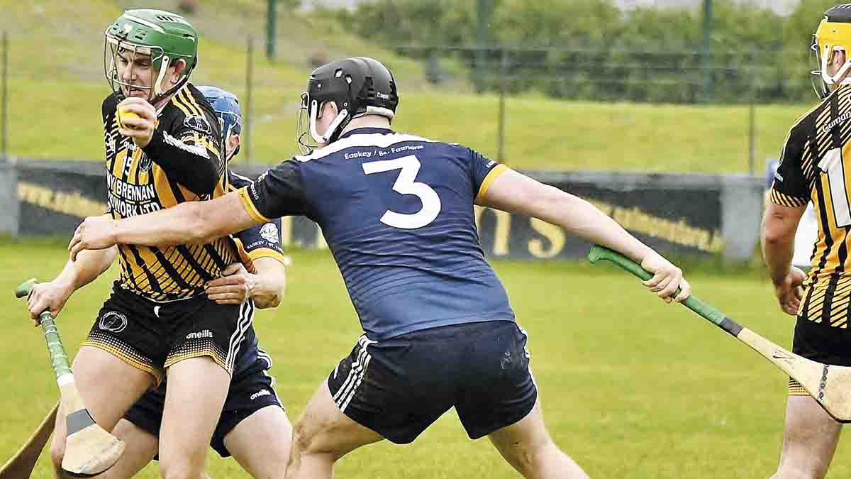 The Westerners hit the next two scores, both from the hurl of dangerman Andrew Kilcullen, one from play, one from a free as they reduced the Marble City men’s lead to four points. St Lachtain’s replied with a placed ball of their own from Hickey, after centre forward Paddy Killeen was halted illegally. Easkey then tried taking a leaf out of their opponent’s book when they launched a long ball in and around the house, which Thomas Cawley flicked over the bar as he rose with a defender and Darren Brennan, the Freshford keeper. The men from the Wild Atlantic Way then struck the next three scores, the first two from play and fine efforts they were, courtesy of Andrew Kilcullen (2) and Rory McHugh, the third, a placed ball after Padraig Donnelly was blown up for touching the ball on the ground by Clare referee Niall Malone.