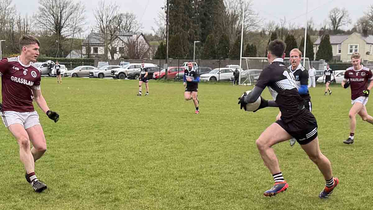 Mullinavat started the brighter of the two teams, settling quickly despite the tricky conditions. Early pressure paid off as they registered an unanswered 1-2. Michael Malone was central to this strong opening, converting two excellent two-point frees from distance, showing both accuracy and composure in the wind. The early goal came courtesy of Robin Davis, who finished clinically to the net after a well-worked attacking move that exposed gaps in the Dicksboro defence.