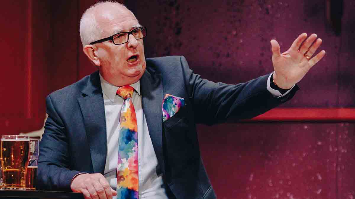 When a production features four monologues, the audience is entitled to be wary, afraid that the play will drag. Not so on this occasion. Each story was treated with an honesty and respect it deserved. The tempo and pace ensured that the audience was engrossed from beginning to end and director and cast are to be congratulated on their attention to detail, while relaying their stories. Apart from the monologues, the banter between the five actors was a joy to behold and the ability of each actor to vary their performance to fight, swear, consume numerous drinks and deliver some wonderful comedy was done with class.. Over the past five years I have seen Derek Dooley, Joe Murray and Ann Murray wear the Lake jersey. Derek Dooley was powerful in The Kings of the Kilburn High Road as the self made man. Equally in this production, his characterisation of Jim, was a treat. Dooley played a character, who appeared not to be ‘knitting with both needles’, and yet was the go to man when facts were needed. His timing, delivery and mannerisms were played to perfection.