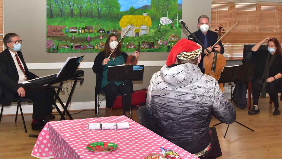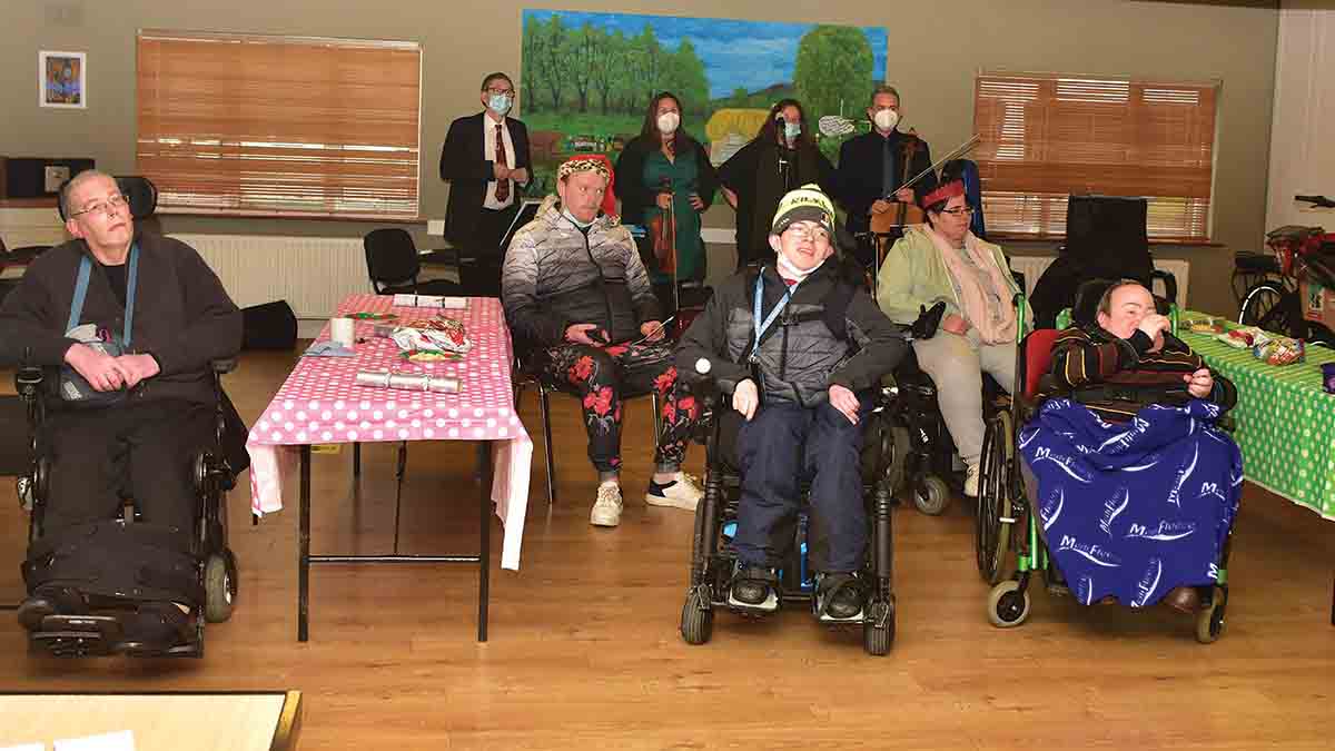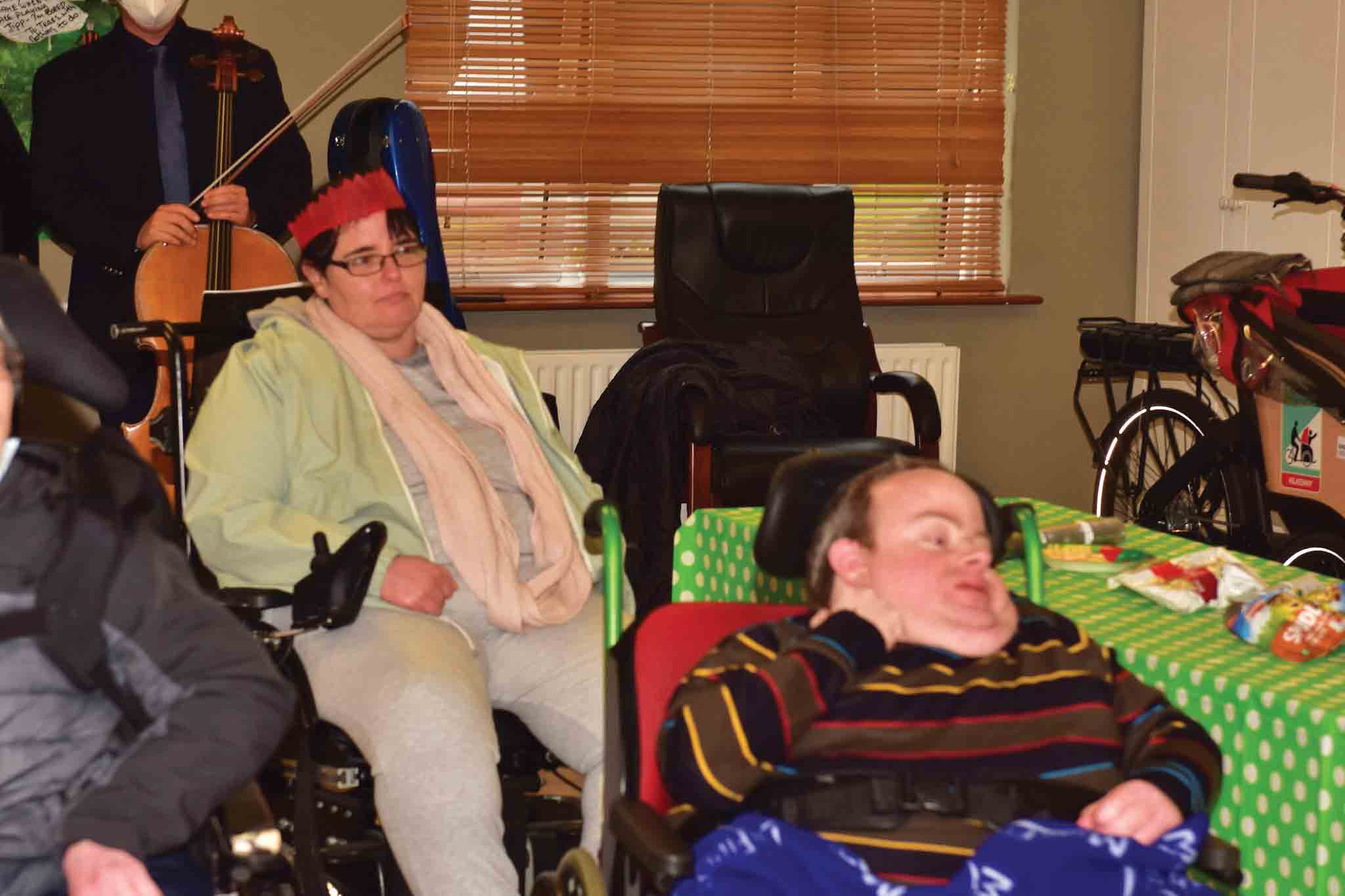 The service users in the IWA have had the privilege of having the ‘Mobile Music Machine’ visit which is a group of the finest musicians from Ireland who played a number of concerts for them over the past 12 months. Covid care concerts were created by Gerald Peregine who plays the cello. The concerts bring the best of Irish talent to nursing homes and disability settings to lift the spirits of the clients and service users throughout the pandemic. The IWA were lucky to have Mary Coughlin perform for them last Thursday, December 16th. The musicians and Mary Coughlin were very generous with their time and played some beautiful classical music, well known hits and Christmas songs. The concert was performed to the IWA service users in the centre on the College Road and those who could not be there joined in on Zoom. The service users were extremely happy with the performance which was a lovely way to end the year. A presentation was made and a hamper and gifts were given to the musicians to say thank you for the concerts they have performed in the IWA throughout the year.