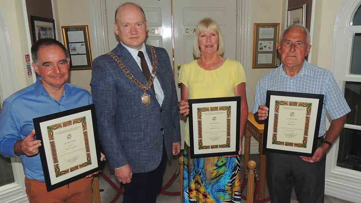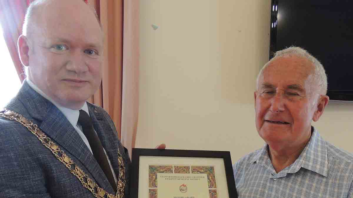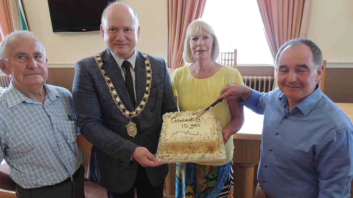 To mark the occasion, Cllr. Fitzgerald presented a certificate to Paddy Neary, Maireann Kelly and Seán Ó hArgáin. Thanking the mayor, Paddy Neary said that it was hard to credit that the group had covered so much ground and lasted so long.” Our walk today, marks five hundred and twenty eight walks over ten year without missing any Saturday.”