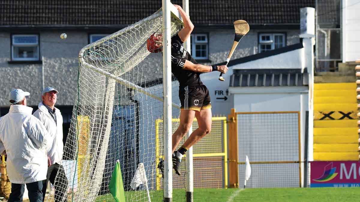 Straight from the throw-in, the intent from both sides was clearly visible. County player James Maher opened the scoring inside the first minute, when his effort went over via the post. Almost immediately, Glenmore went on the attack. Liam Henessey slipped a lovely pass to Captain Ger Aylward, who got away from his marker, Harry Burke, before shooting to the net, to raise the first of five green flags on the day.