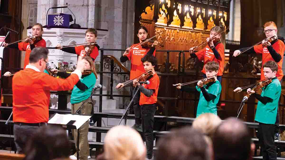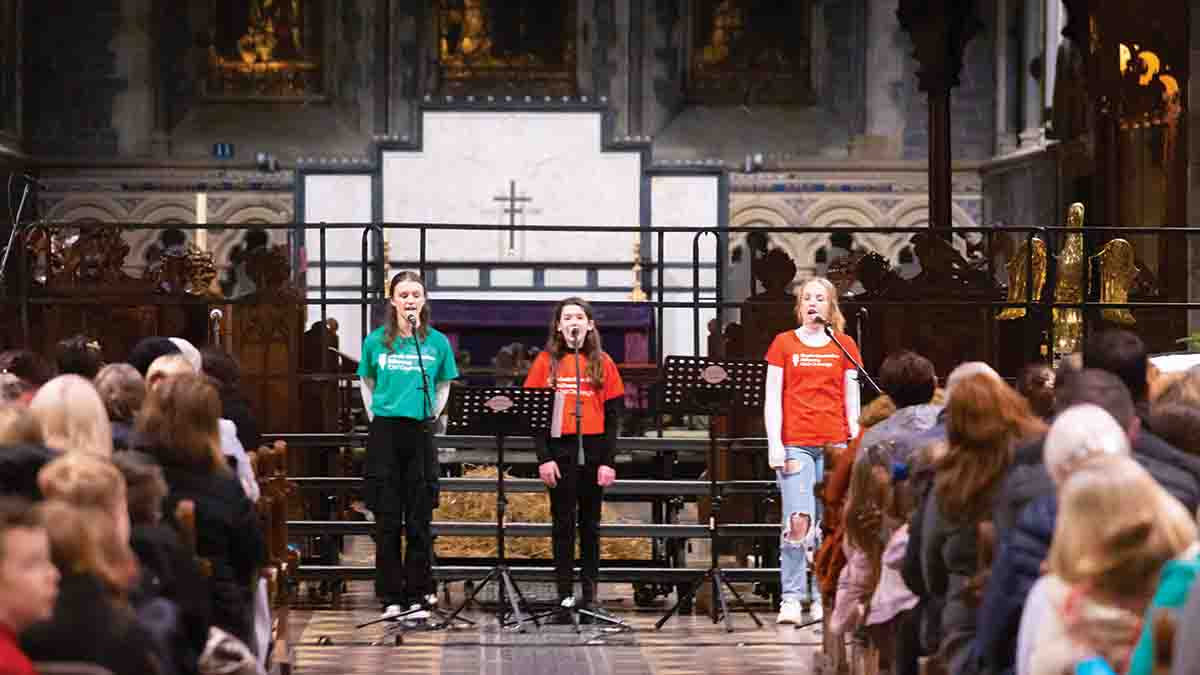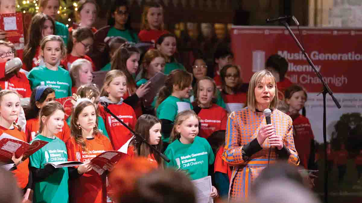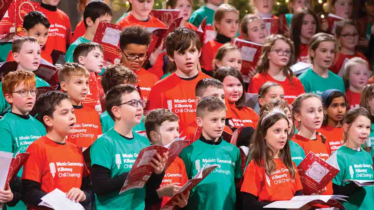 200 children from CBS primary, Gaelscoil Osraí, and St. John of God primary took to the stage in the second half of the concert. After six weeks of preparation, in their own classrooms, those individual schools came together on stage in St Canice’s Cathedral on Monday evening and delivered a heart-warming performance – and received a standing ovation for their efforts.