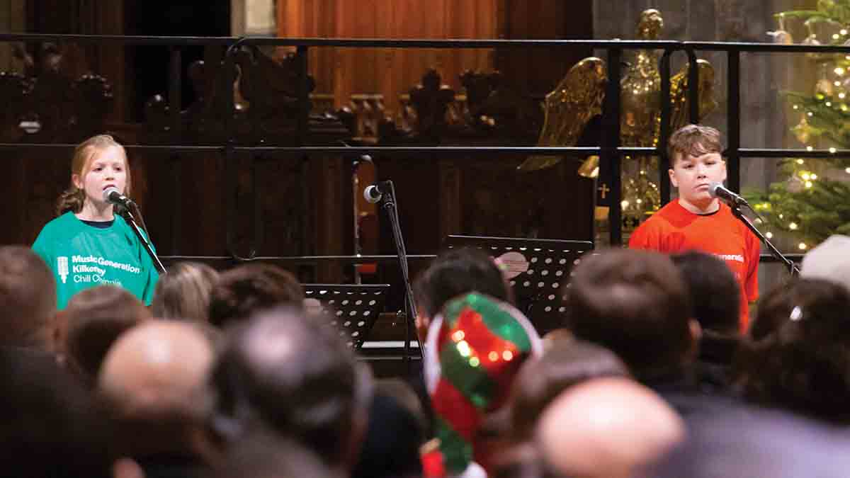 Young musicians from Music Generation Kilkenny gave a 90-minute performance of pure musical joy and sent the audience home with all of the warmth and joy of Christmas. Those lucky enough to get tickets were treated to a string performance by young musicians from the Kilkenny School Project strings programme under Music Generation Kilkenny’s musician educator Carl Rochford. Dazzling the audience with their vocals were Mikey, Jessica, Clare, Tara, Julieann and Enya, young singers from the Creative Music Space, in a selection of festive songs including Have a Holly Jolly Christmas, Prince of Peace and Have yourself a Merry Little Christmas.