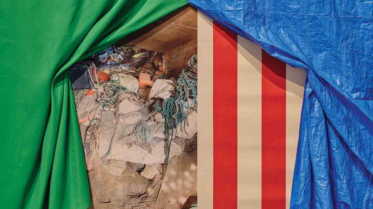 New freeform, large-scale, fabric assemblages loom in the gallery, hosting collaged fabric elements from an evolving, material archive of the artist’s expanded practice.