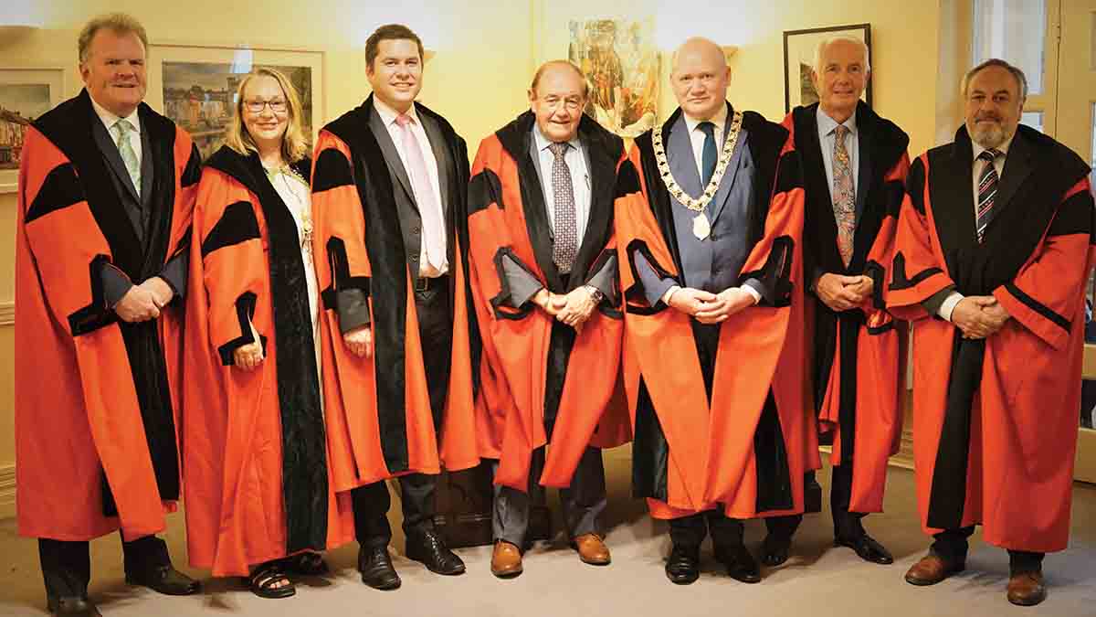 On the evening of the election of Cllr. Joe Malone as mayor of Kilkenny fellow councillors gather in the mayor’s parlour. From left: Incoming mayor Joe Malone, Maria Dollard, Andrew McGuinness, Martin Brett, outgoing mayor David Fitzgerald, John Coonan, Eugene McGuinness