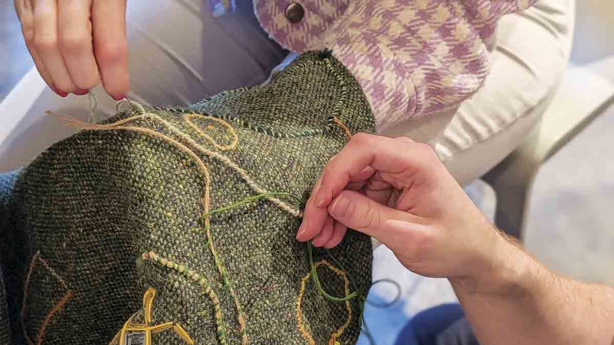 Michelle McMahon, Brat Bríde Project lead artist and creative producer, led an embroidery workshop in the learning centre. Participants embellished the green Mother Cloak with hedgerows, to highlight their role in protecting biodiversity.