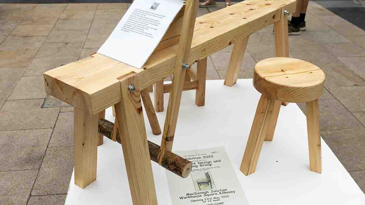 It was a brilliant morning for the College of FET (V.T.O.S Nuncio Road campus). The QQI Level 5 Woodwork and Design class launched their exhibition, ‘The Changing of the Guard’. The beautiful workhouse square courtyard of the McDonagh Junction shopping centre was the venue, and indeed it was a spectacular scene. It was the culmination of a year of hard work, passion and dedication that produced some wonderful enigmatic pieces.